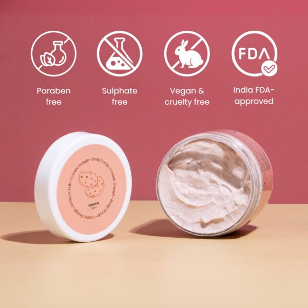 Indulge in the warm, comforting scent of freshly baked chocolate cookies with our Cookie Dough Cream Body Scrub—the best body scrub for smooth, exfoliated skin!