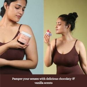 Indulge in a bakery-inspired self-care experience with this chocolatey scrub and warm vanilla-scented candle duo!