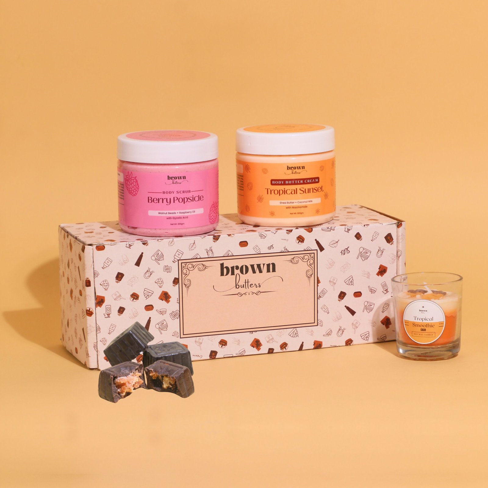 Escape to a tropical paradise with our Summer Vacation Gift Collection—a delightful mix of fruity aromas, exotic beachy notes, luxurious skincare, and indulgent treats!