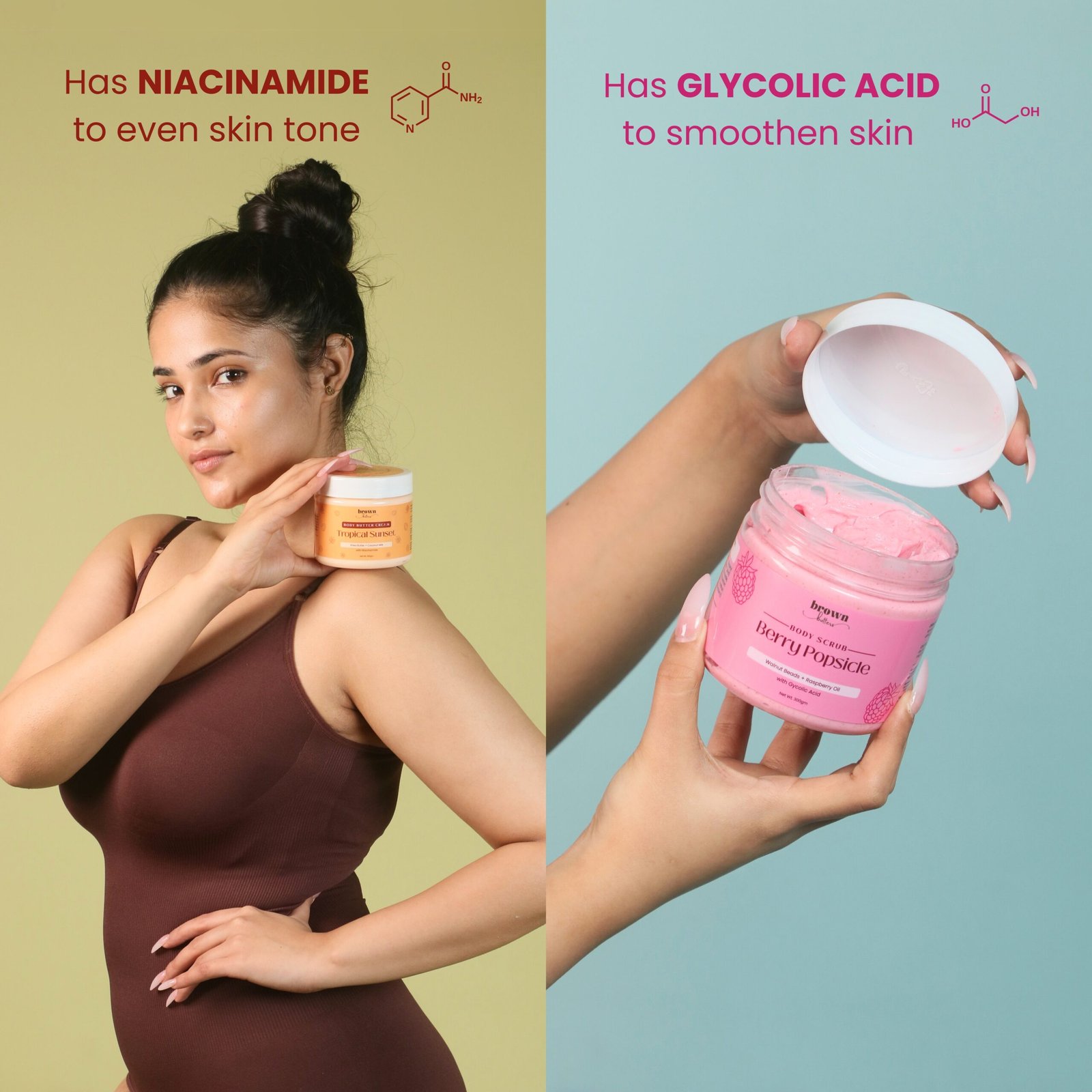 Body Scrub – Purified Water, Paraffinum Liquidum, Glycerin, Glyceryl Stearate (And) PEG-100 Stearate, Cetyl Alcohol, Cetearyl Alcohol (And) Ceteareth-20, Glyceryl Stearate, Walnut Particles, Decyl, Glucoside, Fragrance, Carbomer, Phenoxyethanol, Triethanolamine, DMDM Hydantoin (And) Methylchloroisothiazolinone (And) Methylisothiazolinone, Xanthan Gum, Butylated Hydroxy, Toluene, Disodium EDTA, Rubus Idaeus (Raspberry) Fruit Extract, Glycolic Acid, Permitted Color